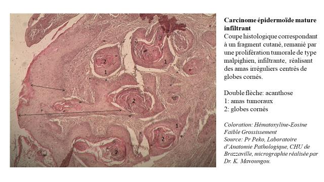 It was a retrospective study conducted at the University Teaching Hospital in Brazzaville from January 1998 to December 2017 (a 20-year period). The inpatients with cutaneous cancer histologically confirmed, who had progressive scarring skin lesions, were included. The epidemiological, clinical, histopathological and therapeutical variables were collected.
